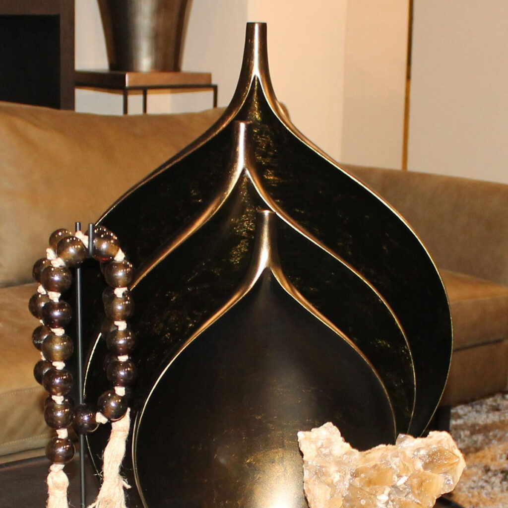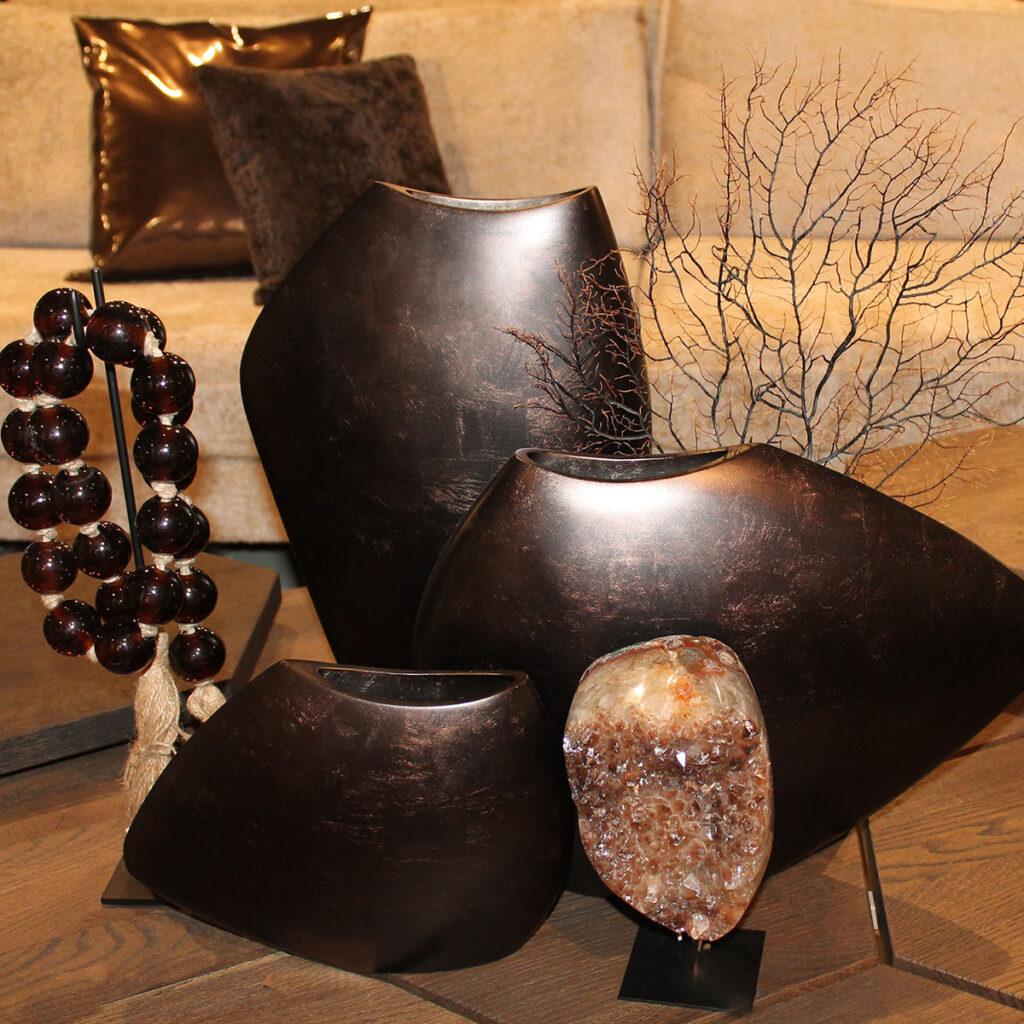 Without decoration, there is no ambience in private, commercial and public spaces. Styling makes the difference. Where Stylerz truly stands out is in the Hotel Chic style: especially silver-plated home accessories for more luxurious interiors. Pots, vases, pedestals, sculptures, bowls, candlesticks, curiosities and natural items — the list is far from complete. So what does complete look like? The all-inclusive provision/addition, the ‘A and B’ formula, the option to fully style the object. So with a vase, there are also flowers and branches to put in it. With a pedestal, there are also vases, bowls and sculptures to place on it. With a display cabinet, there are also objects to showcase in it. That reasoning works the other way around too.