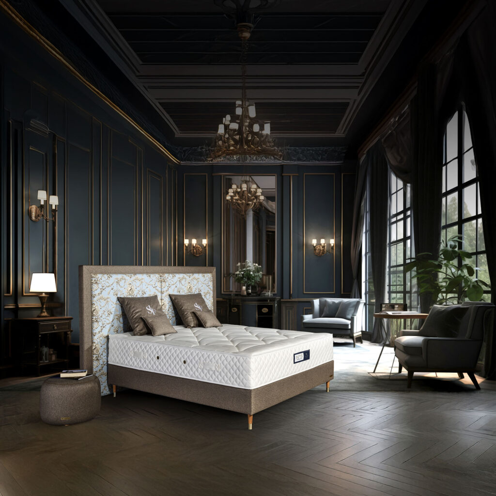 So why create a different brand name? ‘Le Sommeil Français’ perfectly captures the essence of the premium collection. The interweaving with French savoir vivre and luxury; and the alliance between haute couture, cutting-edge technology and the ultimate in comfort. The collection exudes ‘savoir-faire’ — and ‘savoir-sommeiller’. ‘Le Sommeil Français’ transforms the bedroom into an oasis of wellbeing, an all-encompassing experience. The brand kicks off with three pocket spring mattresses, slatted bases, two headboards with two exclusive fabric collections, and two bed linen series. Every creation is a harmonious blend of traditional values and modern innovations.