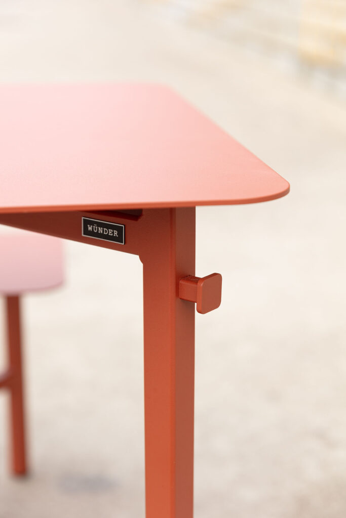 Up to now, Wünder always based its outdoor collections on 8 -10 people. Until reality bit. ‘Smaller living is a reality indoors, and even more so outdoors.’ The concept of The Duo began with a compact two-in-one set for two people. A flat-packed table with integrated seating for two. Once assembled, The Duo takes up just 142 x 70 cm of space, weighs a mere 25 kilos, and stands on just four legs (instead of twelve). All very handy! Easy to transport, simple to assemble, and deployable anywhere. The construction is fixed; not so the usage. For at home, for hospitality settings, beside a sports field…