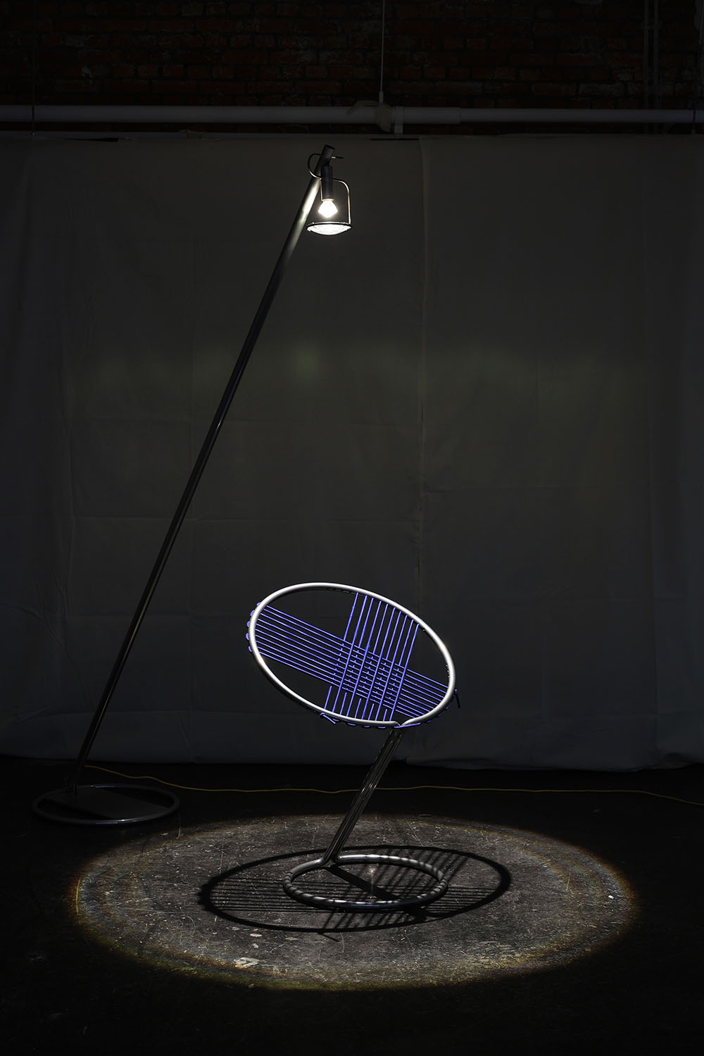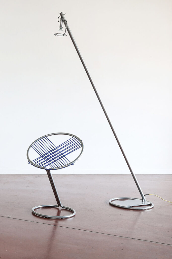 The Container lamp enhances the experience. When you place it beside the Loop chair, it draws concentric circles on the floor, a black circle (shadow line) in a disc of light. The Container places the chair in a conical beam of light, a cloak of light in a dark space. The cone of light acts like an immaterial wall. It’s not physically present, but you do feel it. You experience the dividing line between inside here and outside there. You are secluded without being enclosed. So the lamp is not a separate object, but a connecting element that activates every piece in the series.