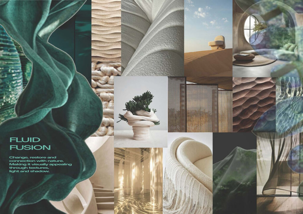 The fluid trend follows the flow of nature. Your interior exudes natural vibes, the lively dynamic of nature. Organic lines that flow smoothly into one another, merging together – in a never-ending living motion. Visualised in patterns, expressed in relief, made tangible in textures. The soft ripple of babbling water, the waves of sand on the beach, in the desert. The raw textures of tree bark, sculpted by the elements and the wind, layer upon layer, day in, day out. The silhouette of nature-grown leaves and flowers, of nature-shaped stones and rocks. The fascinating play of light, darkness and shadow, the eternal dance of wind and water.