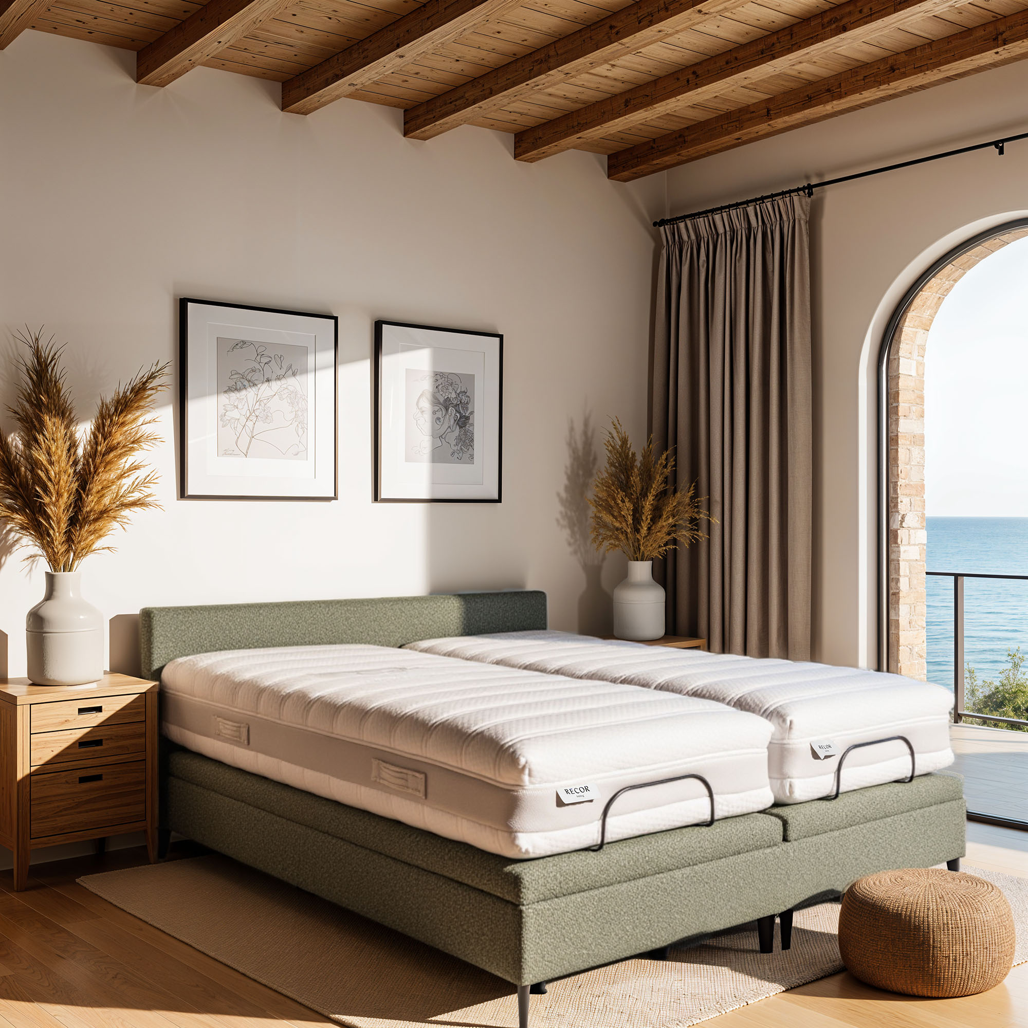 The Wave concept is based on the linearly adjustable Smart base — with functions including Zero Gravity, 3D-Wave™ massage, Sleep Position, Dream Experience and with Bluetooth control. It sounds (partly) familiar, but in fact works differently. For starters, the smart base comes straight from Reverie® (US): the authority in the field of electrically adjustable and modular bases (with more than 100 patents to its name, more than six million sold examples since 2003). Buying direct means a lower price, making it affordable for a wider audience.