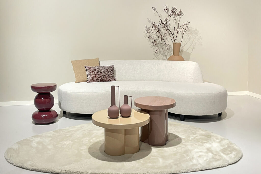 And then – the colourful twist! The Brix side tables, seven in total. The similarity between the models: variations on round, with bulb-shaped spatial figures. This might be a cylinder atop a sphere, or a truncated cone, or a cluster of cylinders. The tops often have rounded edges. Fashioned from steel, with a high-gloss coating in rather trendy colours such as mustard, amber, rust, maroon and vintage pink. All are made to raise the interior game: they fit everywhere and always come in handy.