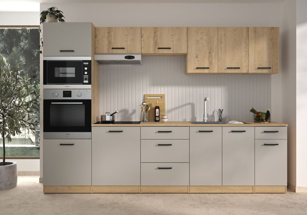 Gami is also active in the kitchen these days. Alpaga consists of modular base and wall cabinets – including a one-piece worktop. For every kitchen block configuration there is a standard worktop length (120-240 cm long). There is always a worktop that fits perfectly – with no need for cutting. You simply need to cut out the openings for the hob and sink; fortunately, the cutouts are marked on the underside of the worktop. In France, the kitchen units are already a hit.
