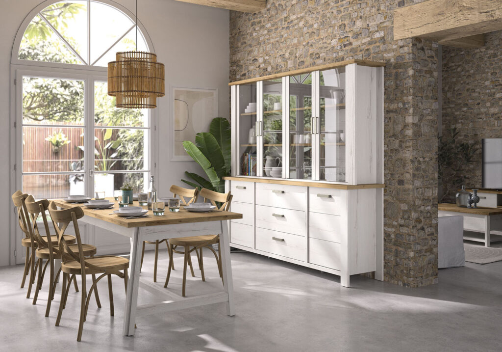 The Audace living room range stands out with its striking asymmetry, just that tiny bit differently proportioned. The division of the fronts (sliding doors) seems random, with no fixed order. The support comprises one perfect diagonal and two interrupted parallel lines. The latest look for Audace features ‘gris cendrée’ oak and a travertine finish.