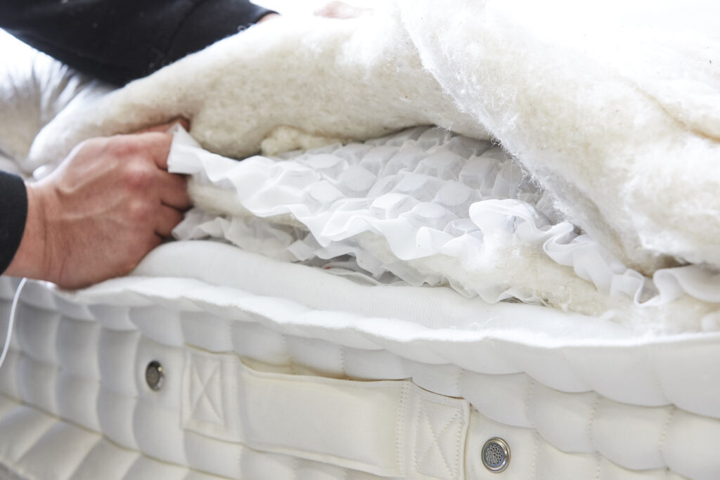 The family business founded in 1840 is now in the hands of the fifth generation. These days, that is vanishingly rare. The firm’s core offering is handmade sleeping comfort, traditionally crafted from natural, recyclable materials. Every generation raises the bar a notch higher. The business is now 90% self-sufficient, incorporating a micro pocket spring workshop, and an on-site textile weaving mill. It even supplies its own natural raw materials for the filling. The bedding firm is the only one of its kind in the UK to run its own farm. Sheep, alpacas, angora goats and horses graze in its meadows. This idyllic tableau is the ultimate calling card for the natural sleeping experience. The farm’s primary purpose is to cultivate flax and hemp for the textile production and the filling materials. Of course, this is the optimal way to control quality. The mattress materials are naturally flame retardant – and you can be 100% sure they are chemical free! (In the UK the fire safety norm is exceptionally high.) The 3-D pouches for the micro pocket springs are made from bamboo. Other natural raw materials are organic silk, recycled cashmere, Egyptian cotton and horse hair. Glue and foams are strictly taboo. The firm purchases all materials it does not have in-house from local suppliers where possible: so British wool, and British steel.