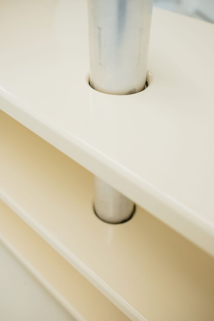 The chrome of his childhood has given way to aluminium – naturally in combination with a high-gloss finish. ‘A reflective finish has two advantages: daylight penetrates deeper into the space; and the object does not impose itself, because it blends into its surroundings.’